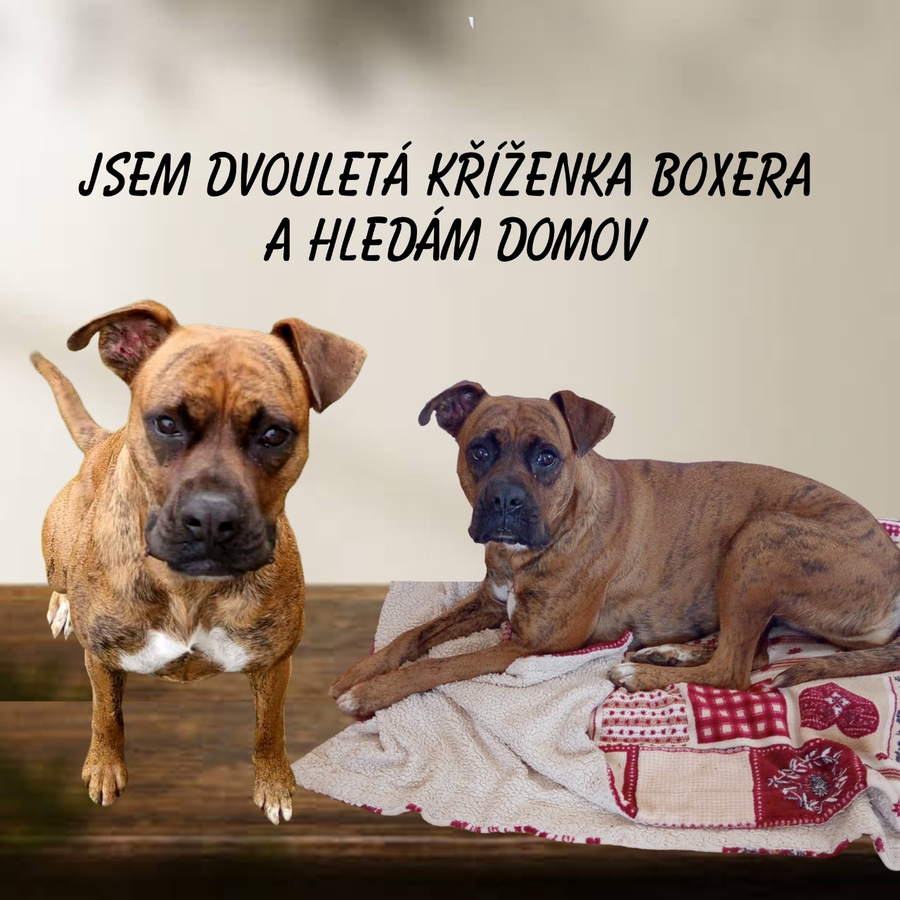 Domov hledá 1,5 letá boxerka, socializovaná, kontaktní a přátelská, s kočkami nebyla ve styku, s pejsky by neměl být problém.